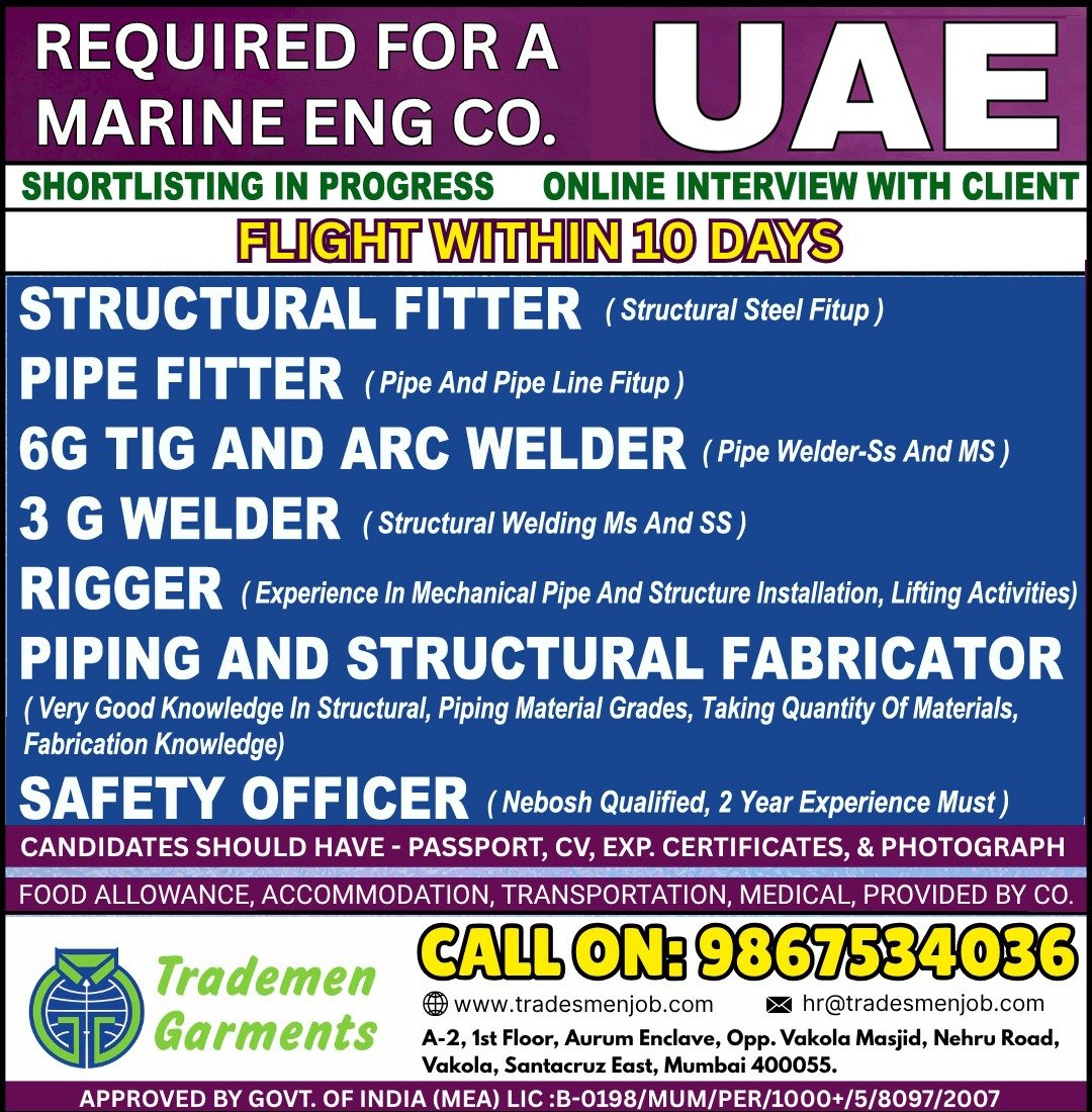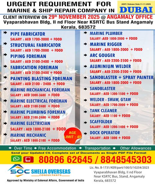 URGENT DUBAI JOBS – Marine & Ship Repair Company