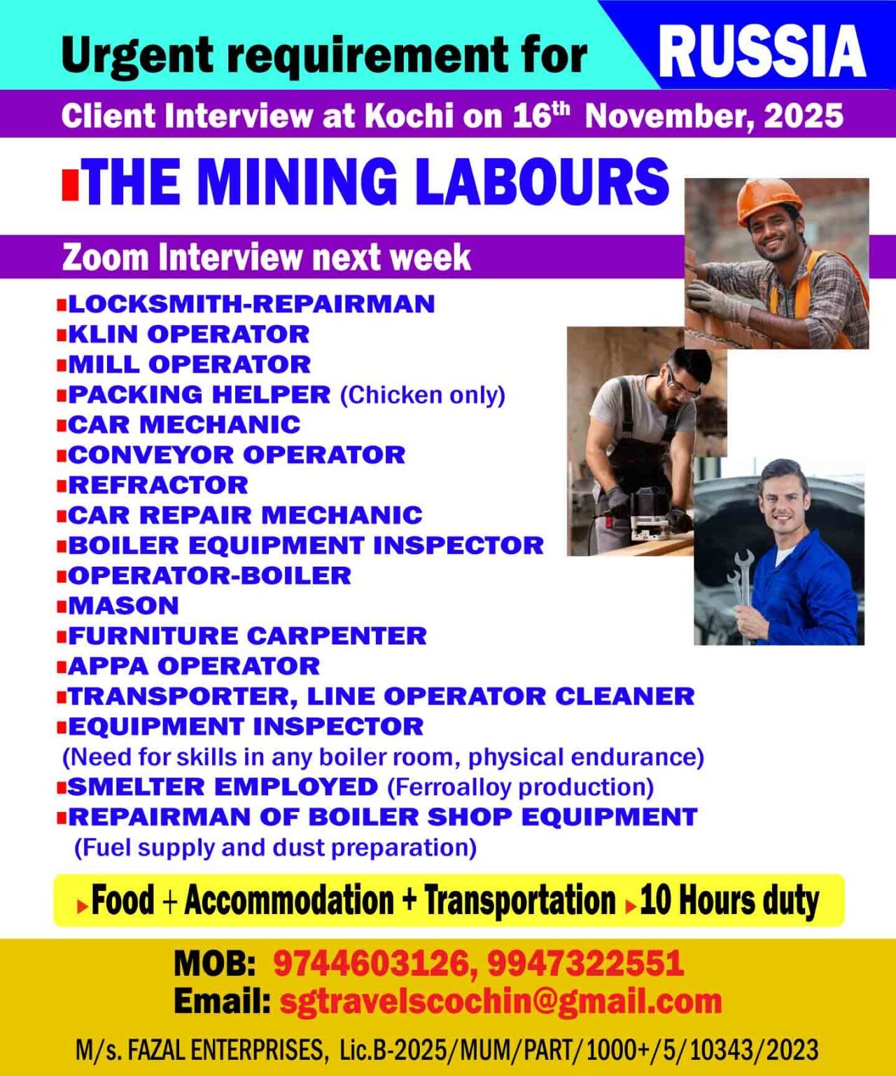 Urgent Mining Jobs in Russia – Client Interview on16th Nov 2025 | Free Food + Accommodation + Transport