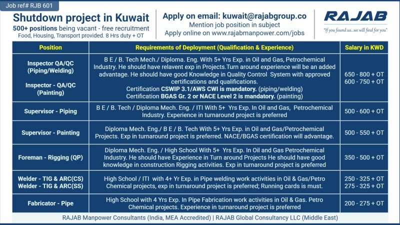 Shutdown recruitment for Kuwait (Turn around project 500+ roles)