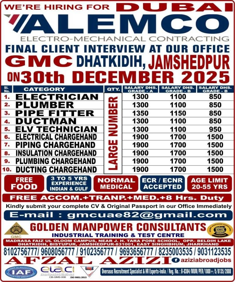 Free Recruitment for UAE: Short Term & Long Term Projects – Final Interview on 22nd Dec 2025