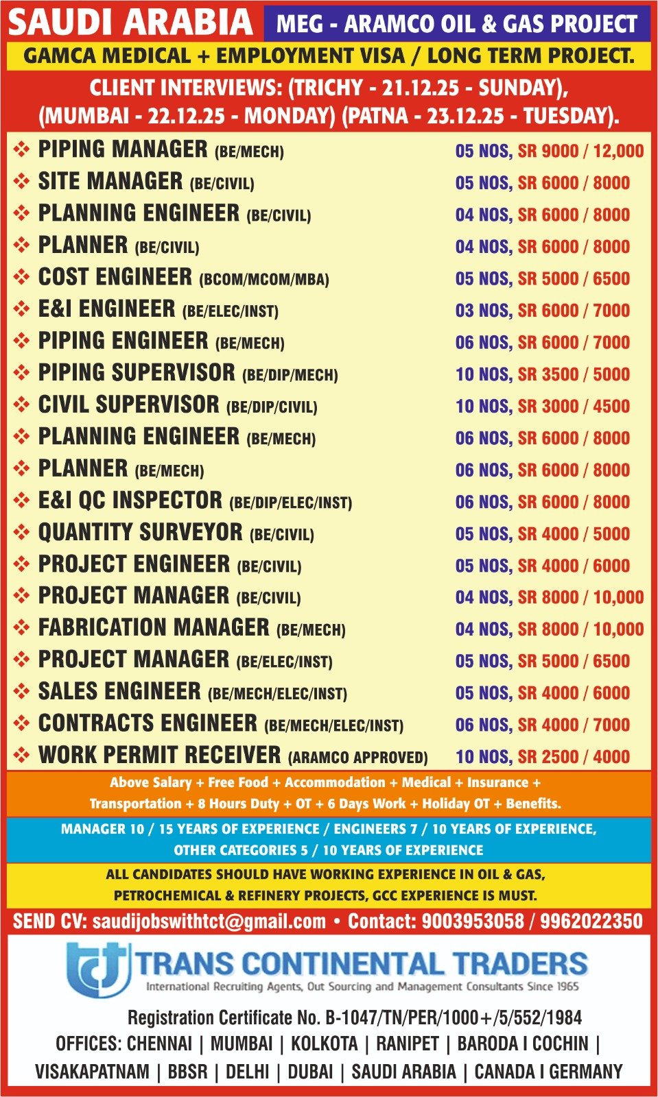 Jobs in Saudi Arabia: MEG Aramco Oil & Gas Project – Client Interviews Dec 2025