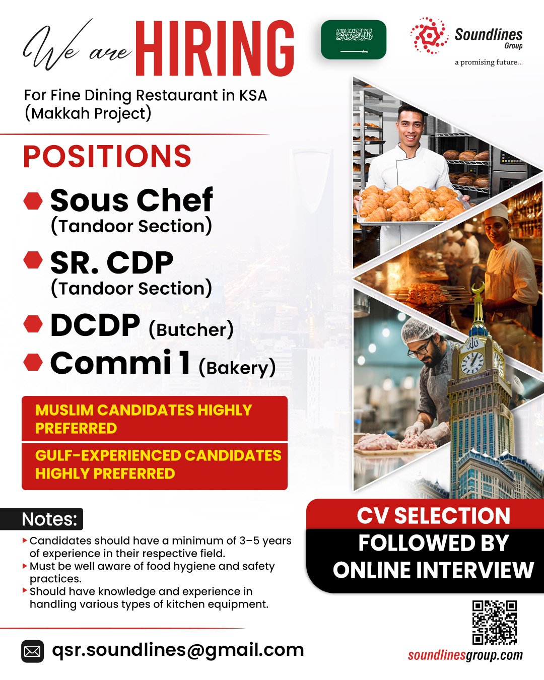Recruiting For Fine Dining Restaurant in Saudi Arabia (Makkah Project)