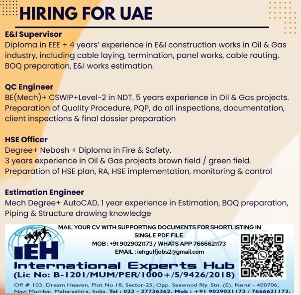 Multiple Job Openings for an Engineering & Construction Company in UAE