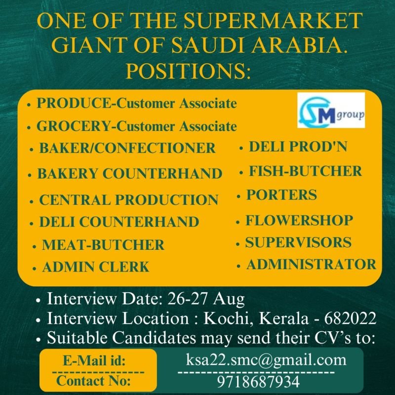 Urgent Hiring  For Saudi Arabia | Supermarket Chain