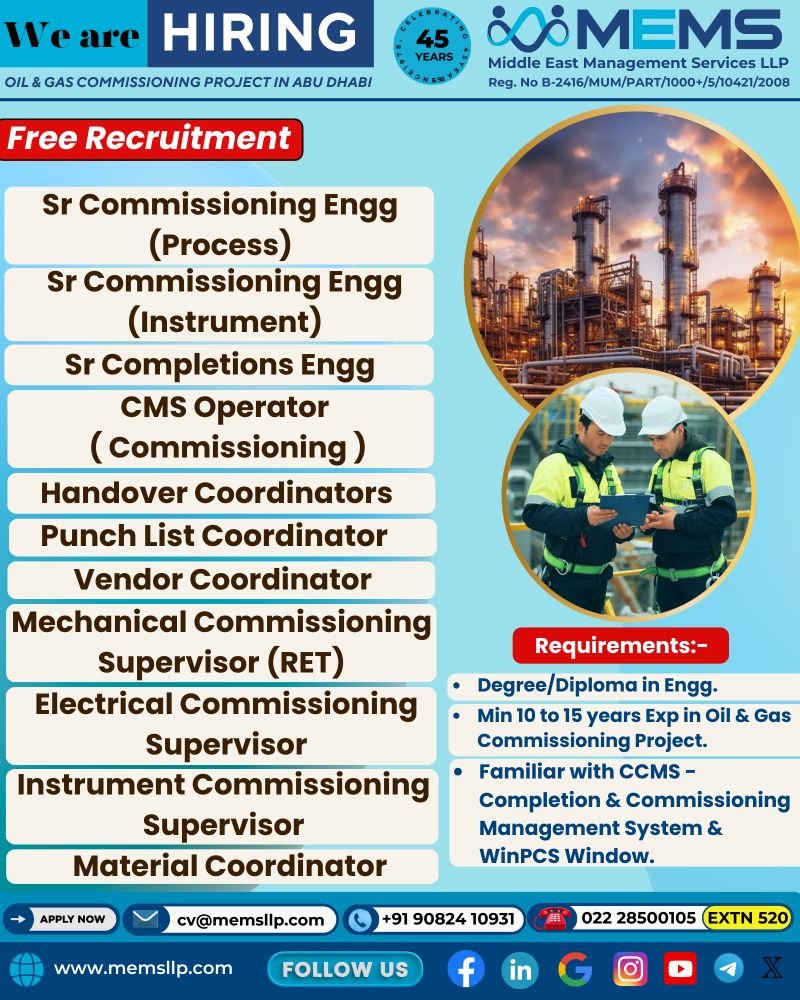 hiring for Oil & Gas Commissioning Project in Abu Dhabi