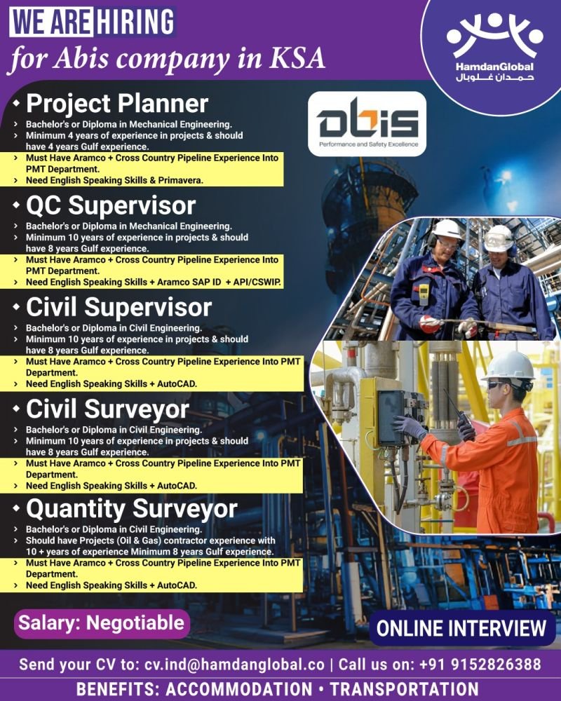 Hiring in Saudi Arabia – Oil & Gas Construction Project