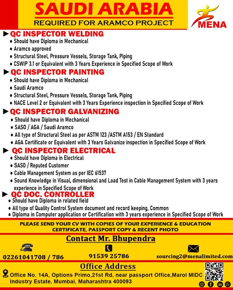 Urgent Hiring for ARAMCO Project – Saudi Arabia
