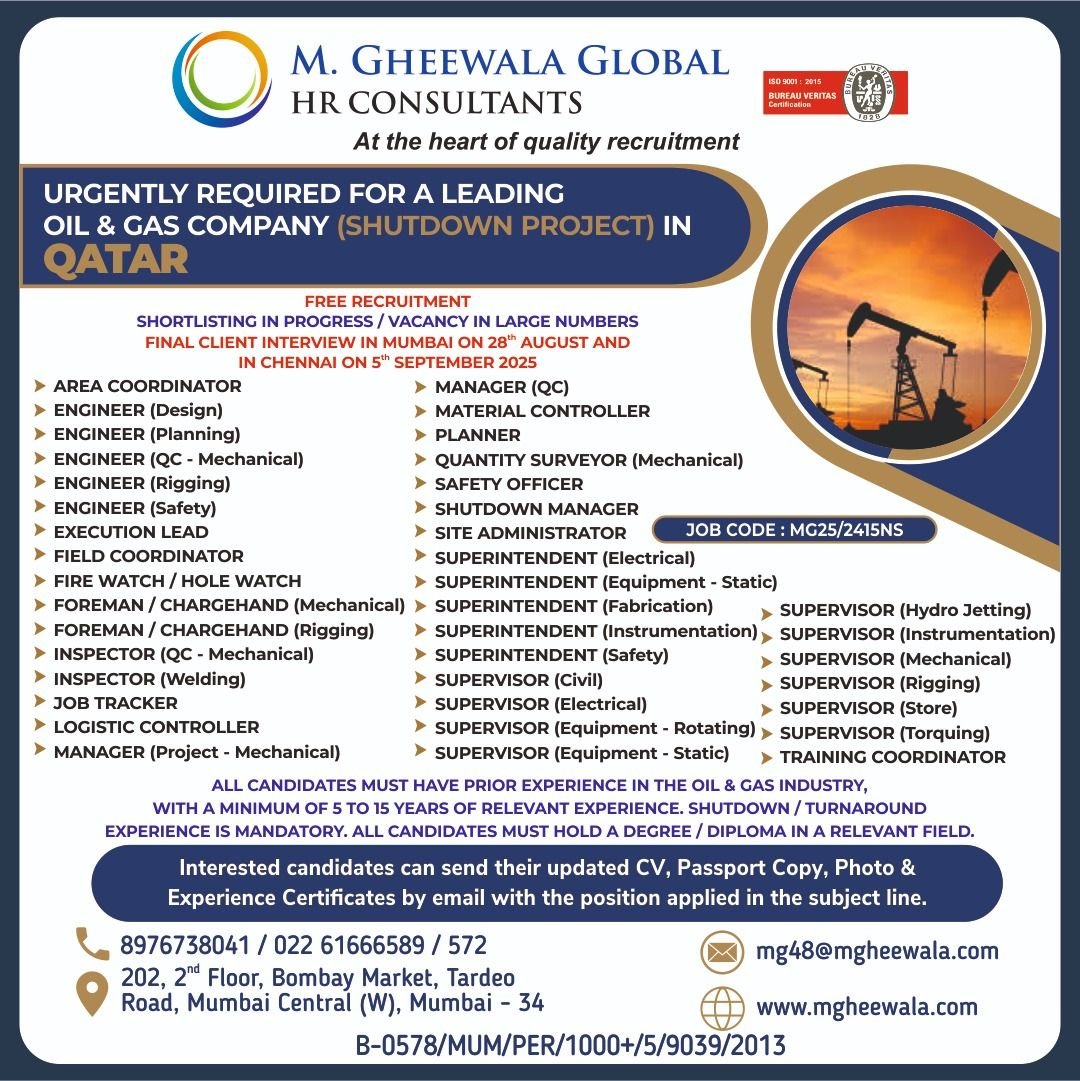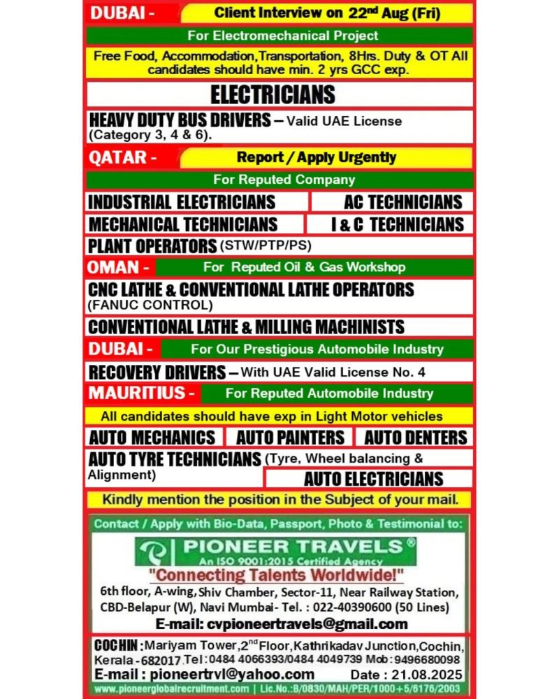 Hiring For Dubai,Qatar,Oman & Mauritius