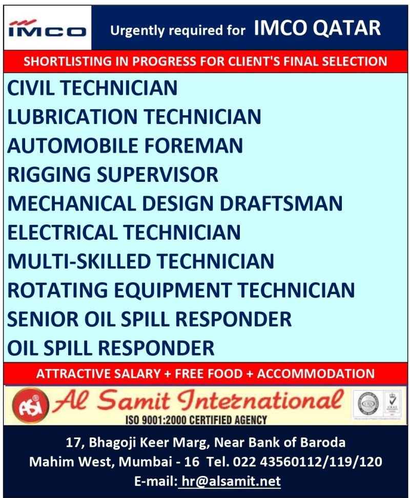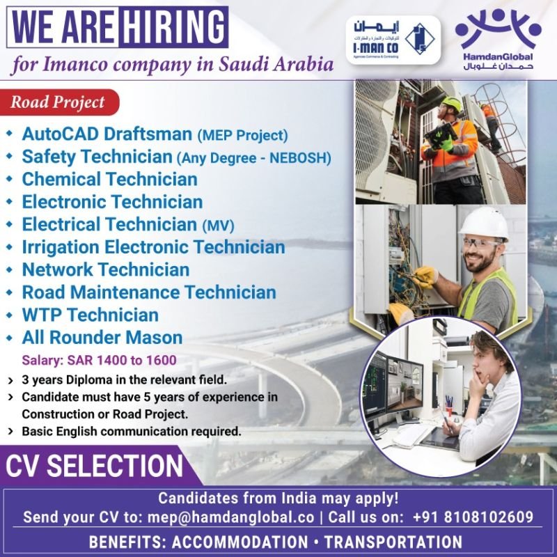 hiring for Imanco company in Saudi Arabia – Road Project – CV Selection
