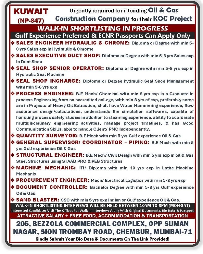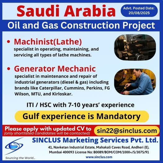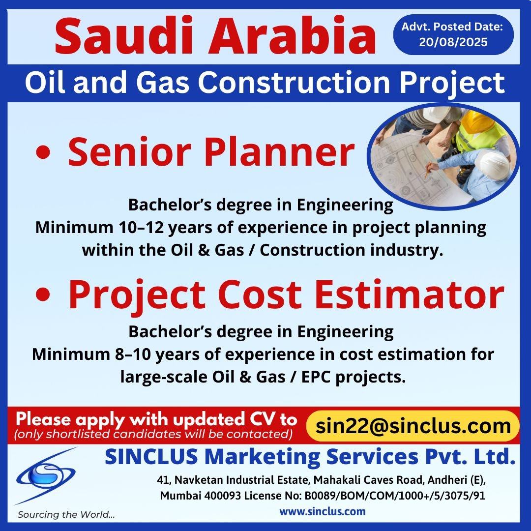 Career Opportunities in Saudi Arabia – Oil & Gas Construction Project