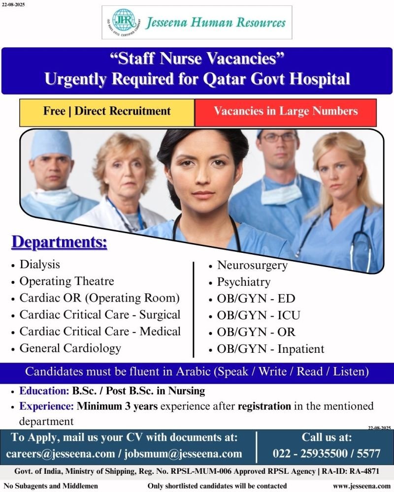 “Staff Nurse Vacancies” Urgently Required for Qatar Govt Hospital