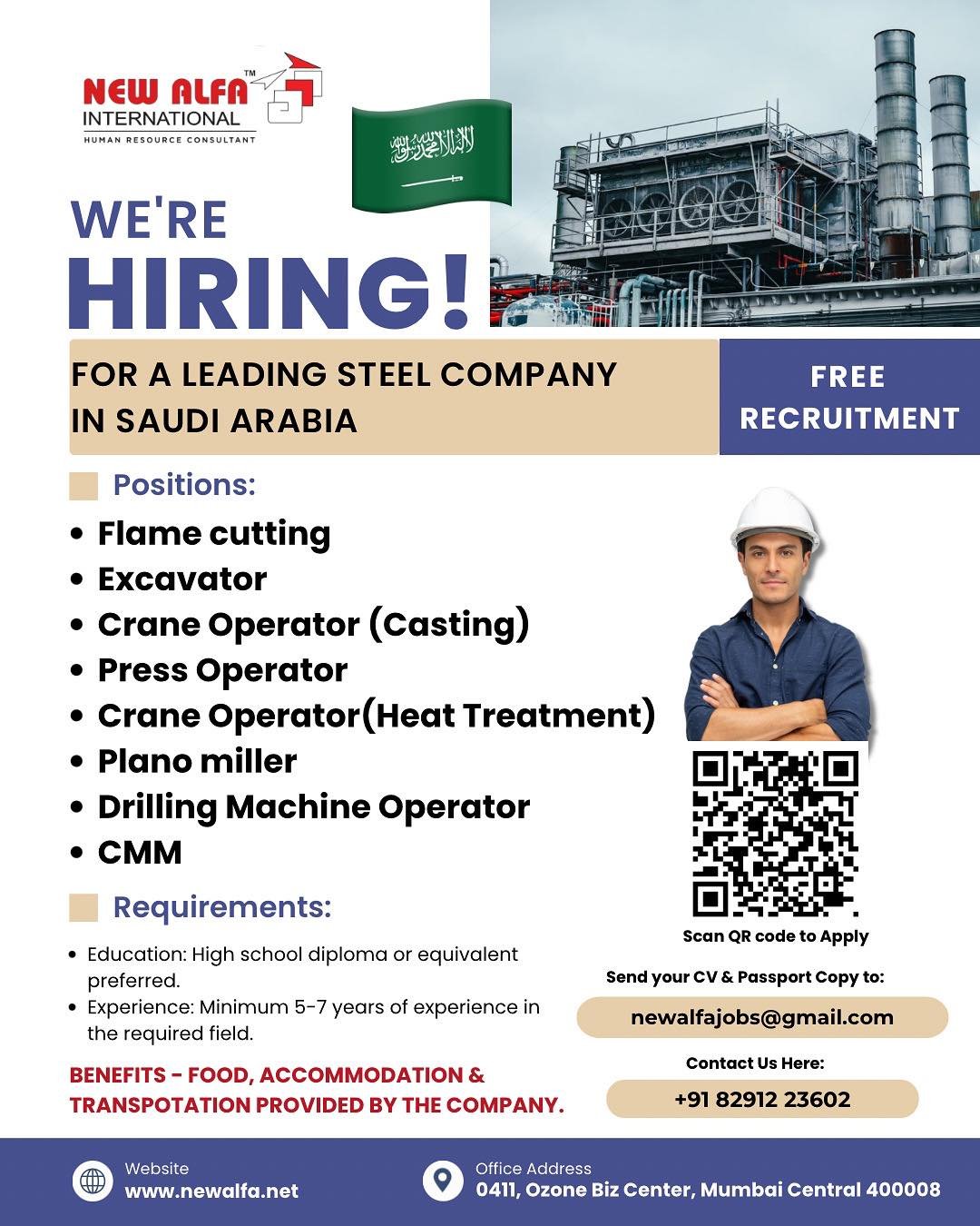 Urgent Hiring for a Leading Steel Company in Saudi Arabia!