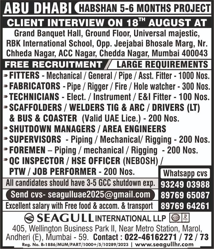 UAE Jobs : Abu Dhabi Shutdown Project (Habshan | 5–6 Months)