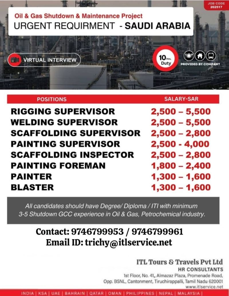 Saudi Arabia – Job Vacancies For Oil & Gas Shutdown Maintenance Project