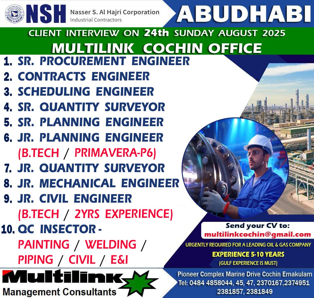 UAE Jobs – Urgent Requirement for NSH Abudhabi
