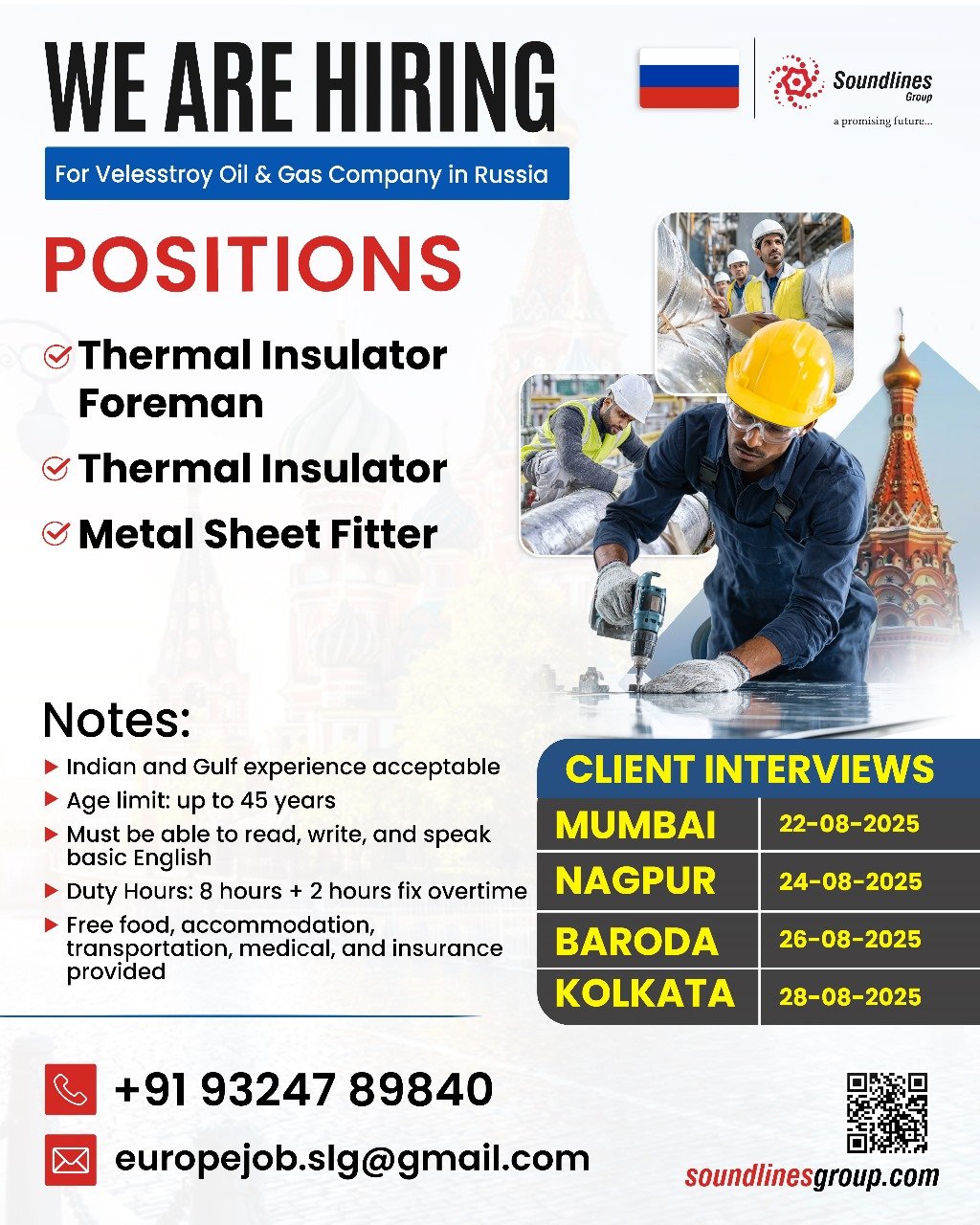 Recruiting For Velesstroy Oil & Gas Company in Russia