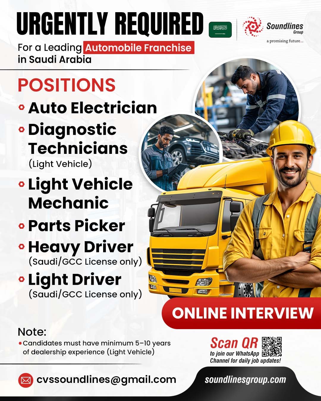 Job Vacancies For a Leading Automobile Franchise in Saudi Arabia