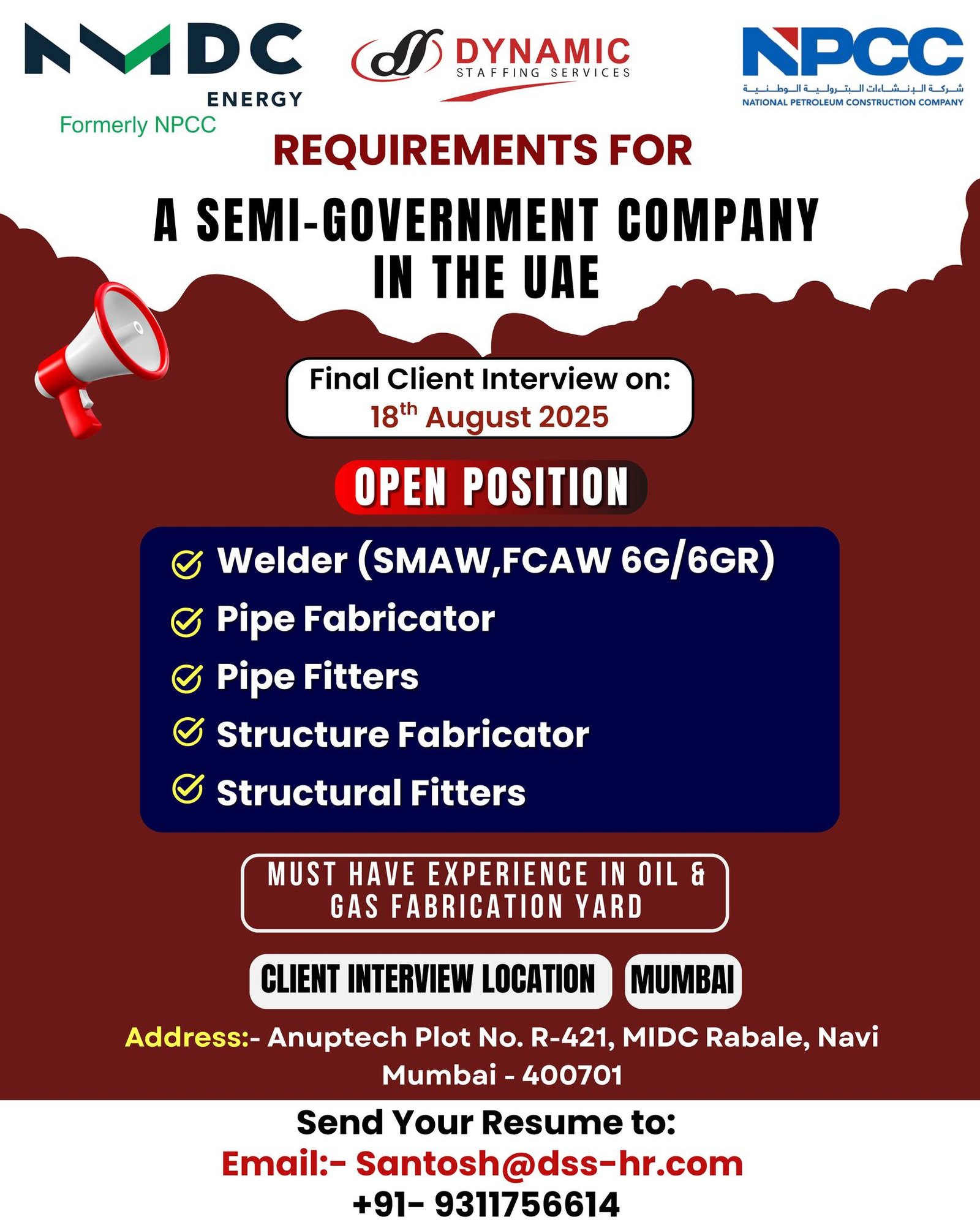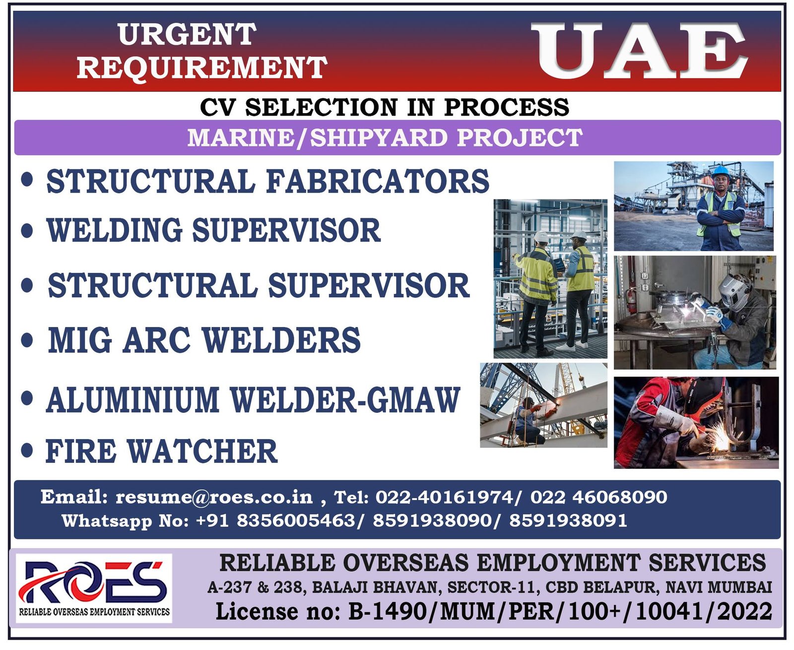 Urgent Job Openings in UAE Marine/Shipyard Project – Apply Now