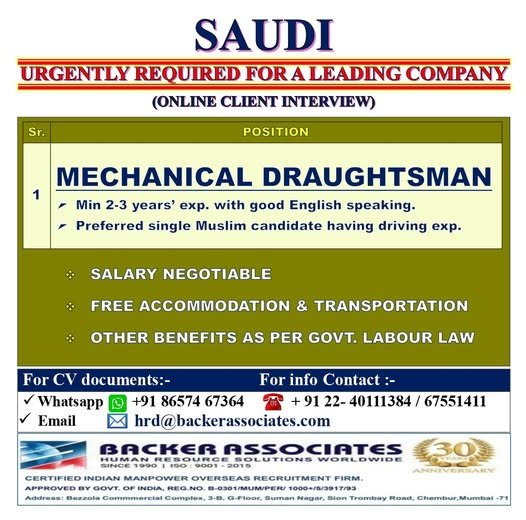 Hiring Mechanical Draughtsman For Saudi Arabia
