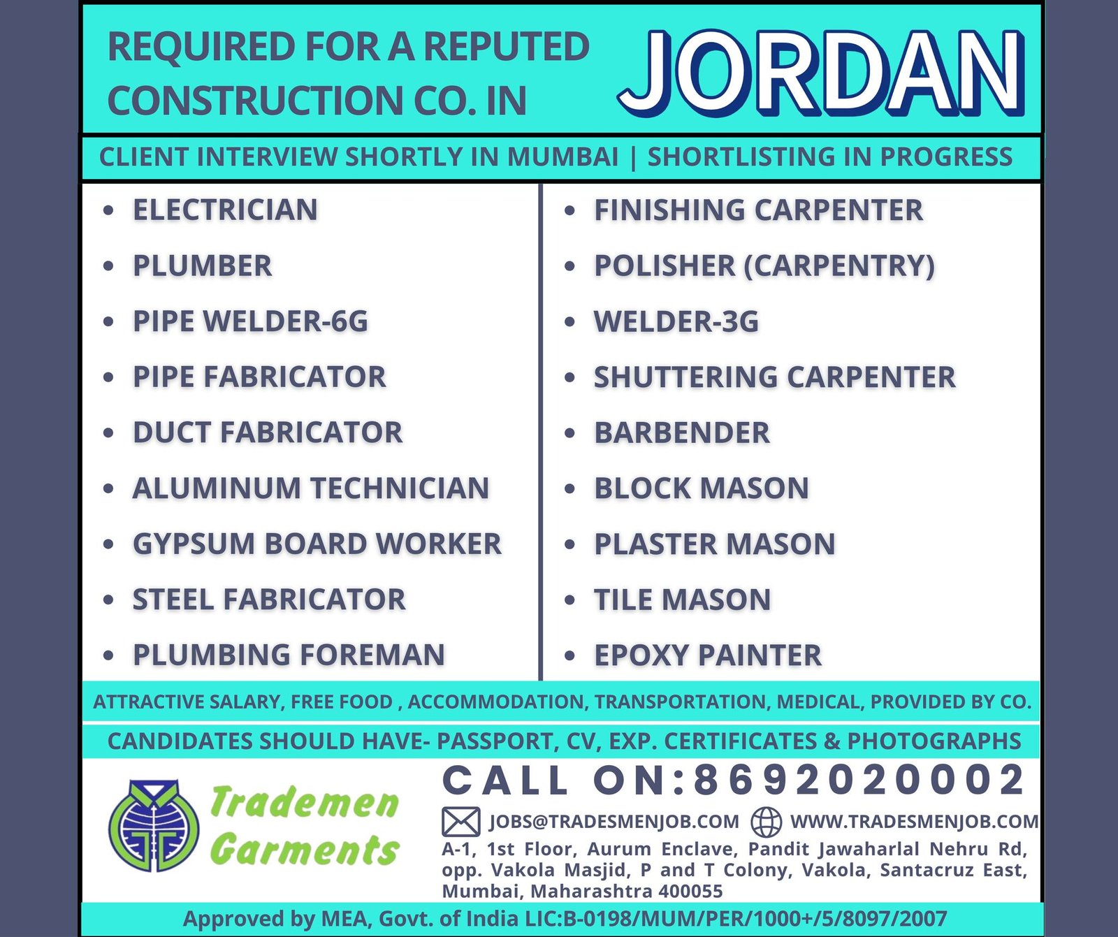 Urgent Construction Jobs in Jordan 2026: Apply Now