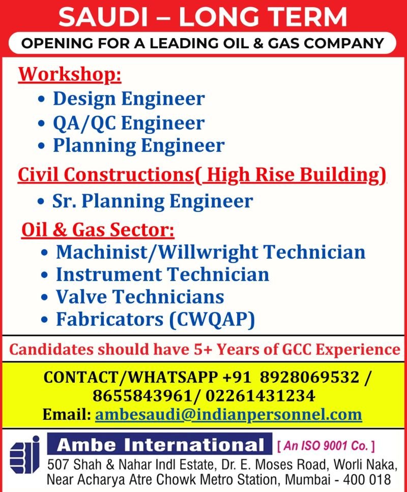 Urgent Shutdown Jobs Saudi Arabia – Oil & Gas Leading Company | Client Interviews Dec 2025 (Min 5+ Years Exp Mandatory)