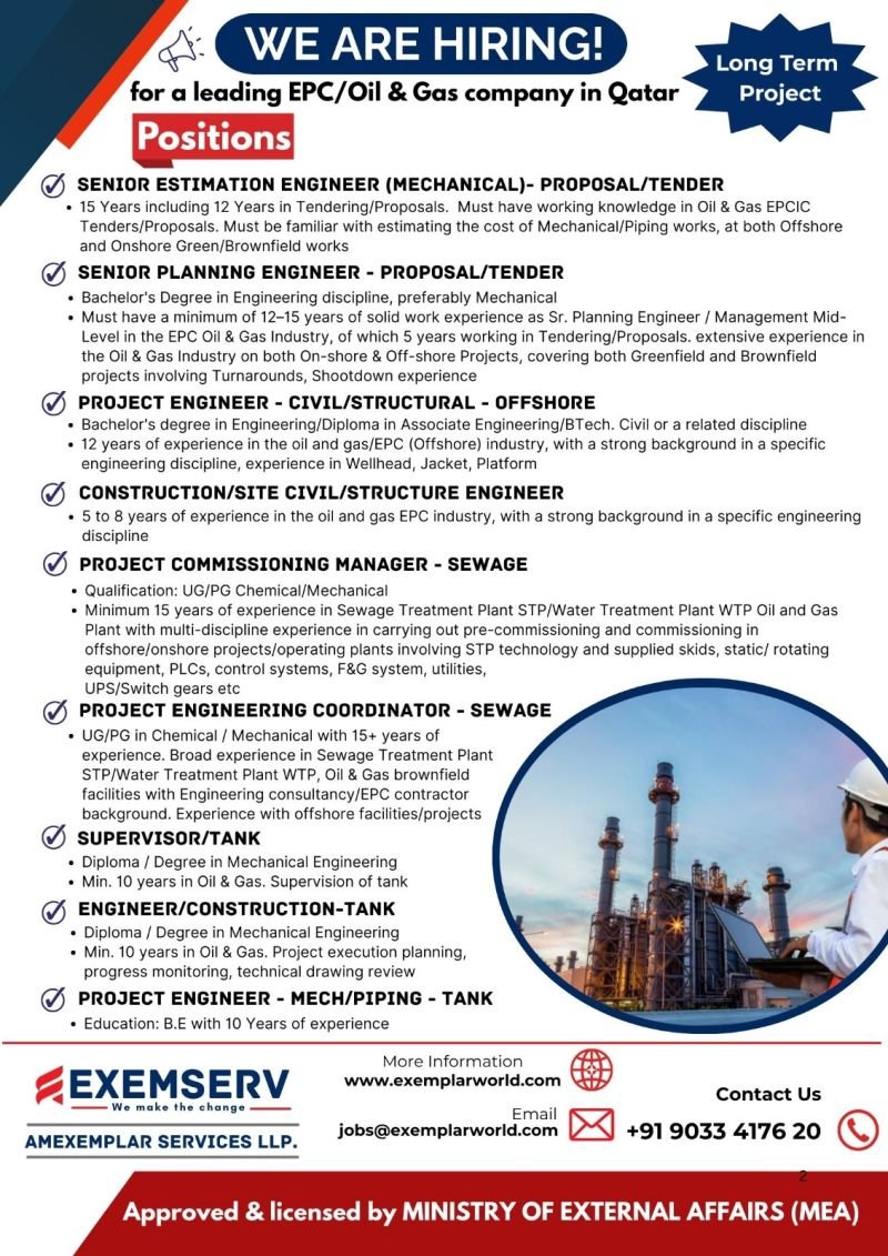 Qatar : Urgent Hiring for Long-Term Oil & Gas EPC Jobs  – 2025-2026