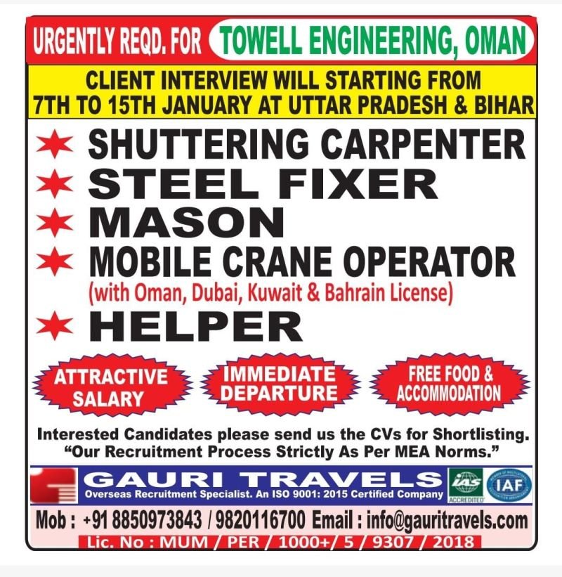 Job Openings at Towell Engineering, Oman: Construction Roles