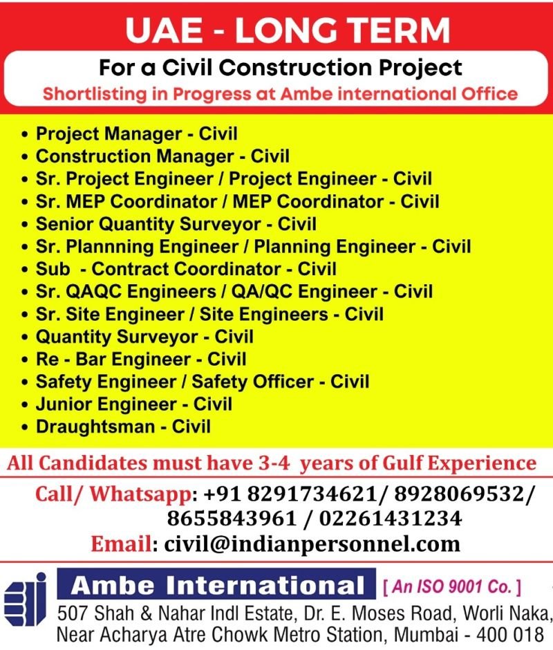 Long-Term Jobs in UAE: Civil Construction Project Hiring