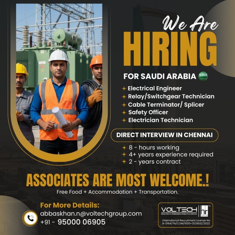 Hiring for Saudi Arabia – Power & Electrical Projects