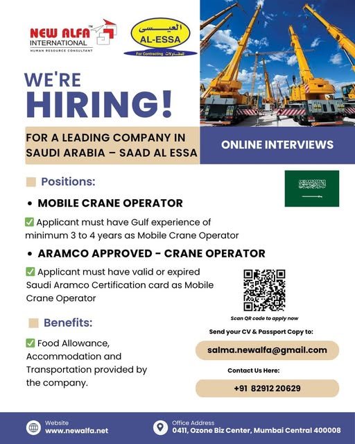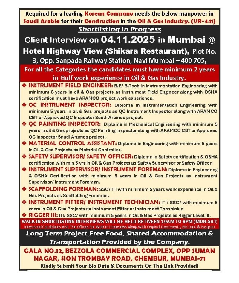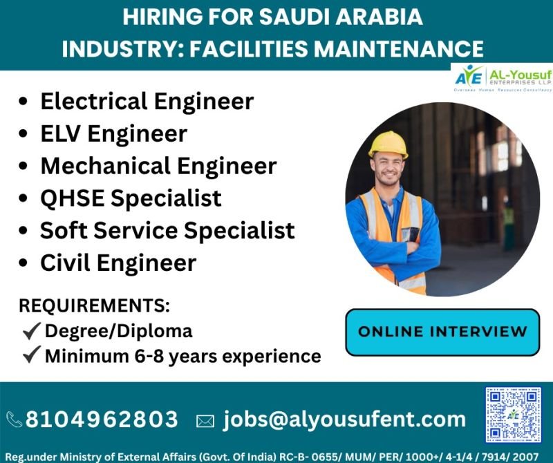 Urgent Facility O&M Jobs in Saudi Arabia – Client Interview in Mumbai on 6th Nov 2025