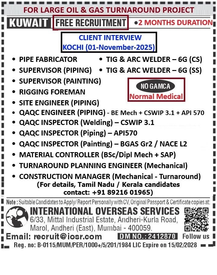 Kuwait Jobs : Oil & Gas Turnaround Project Opportunities