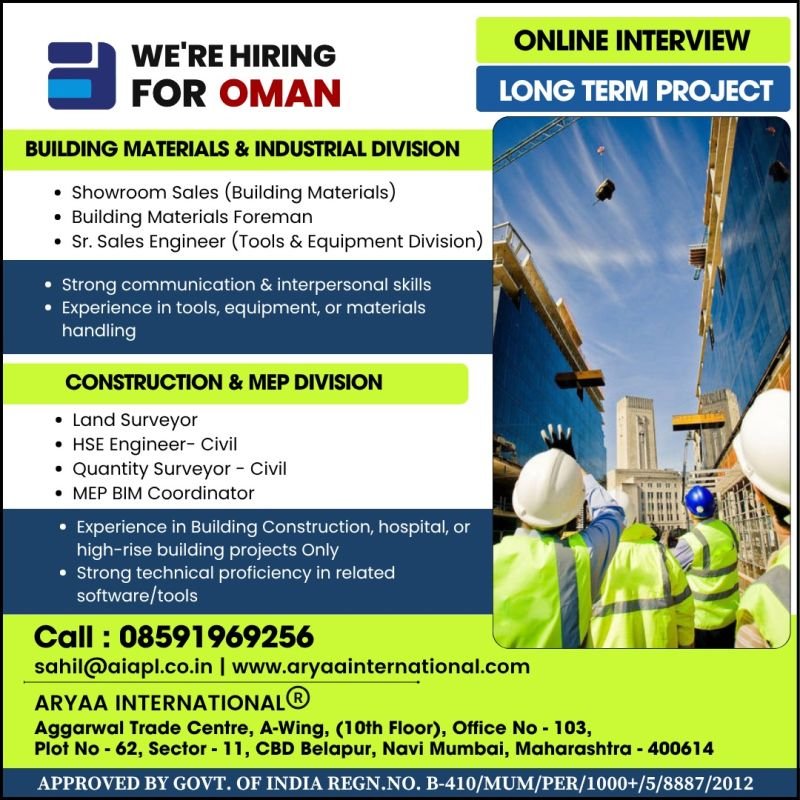 Urgent Hiring: Construction & Building Materials Jobs in Oman – Online Interviews