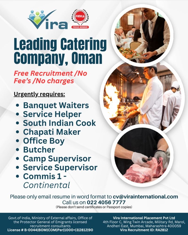Urgent Free Recruitment: Catering Jobs in Oman – No Fees, No Charges