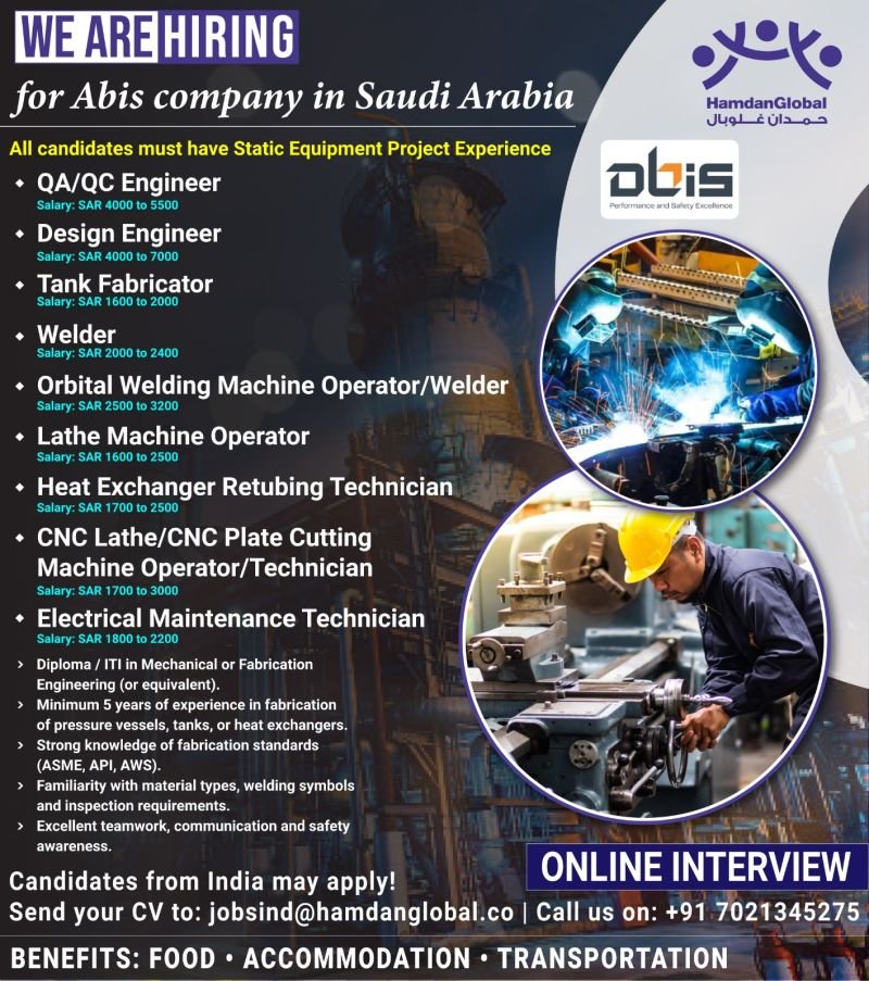 Hiring ENGINEERS & OPERATORS For a Leading Company in Saudi Arabia