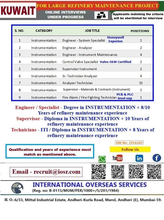 Kuwait Shutdown Jobs: 2–3 Months Shutdown for Bader Al Mulla / Equate E&I Project