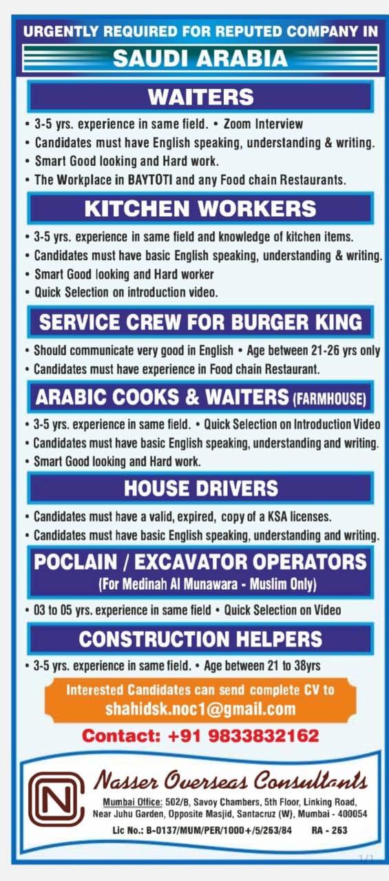 Urgent Job Openings in Saudi Arabia: Waiters, Kitchen Workers, Service Crew & More – Apply Now!