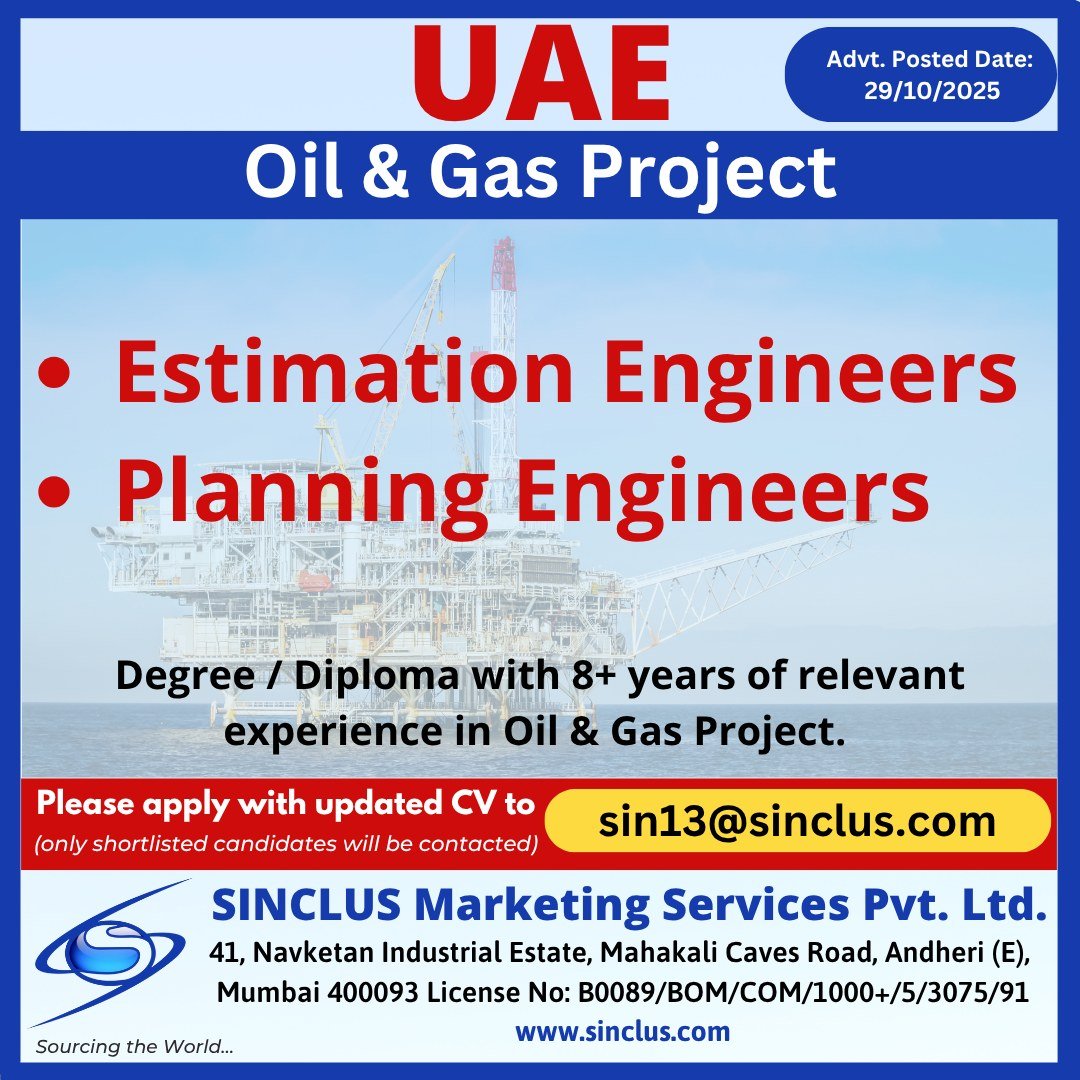 UAE Oil & Gas Jobs: Estimation Engineers, Planning Engineers – 8+ Yrs Exp | Apply Now!