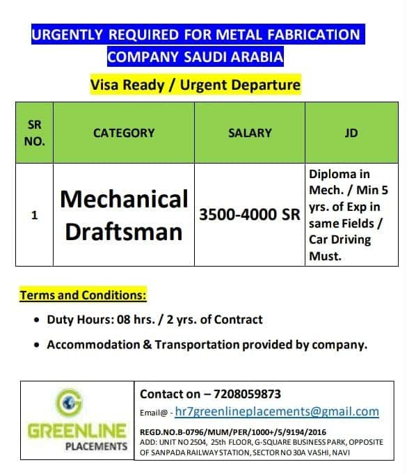 Urgent Saudi Arabia Job: Mechanical Draftsman – Metal Fabrication | 3500-4000 SR | Visa Ready!