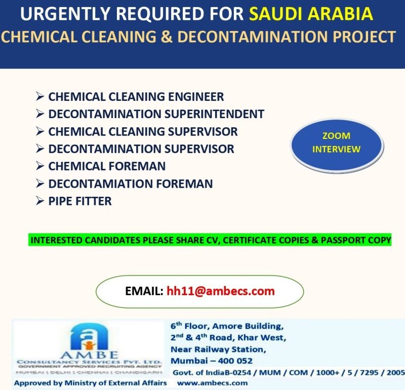 Urgently Hiring for Chemical Cleaning & Decontamination Project in Saudi Arabia