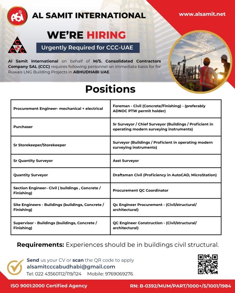UAE : Urgent Job Openings at Consolidated Contractors Company W.L.L.