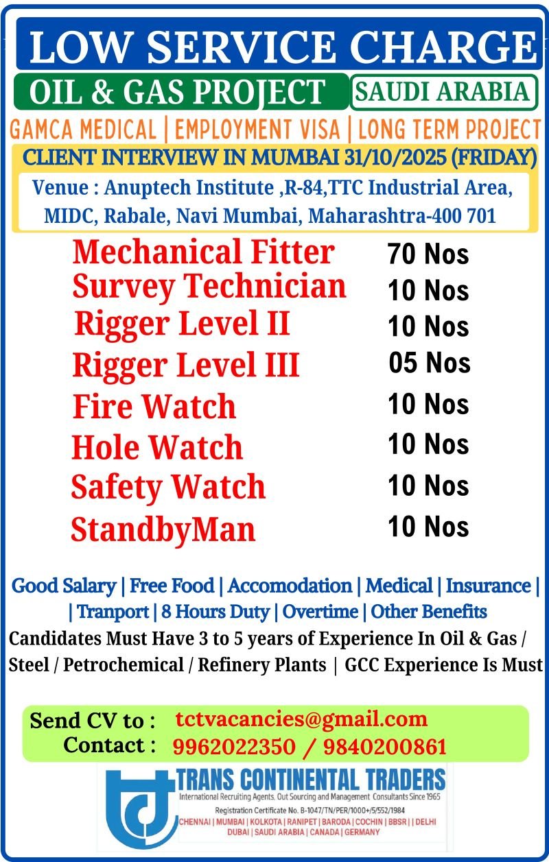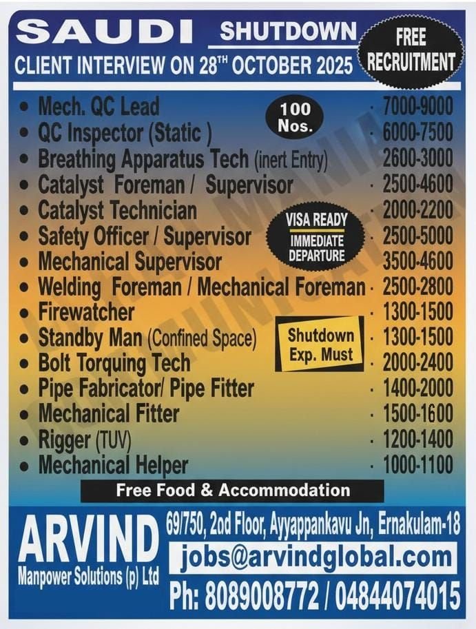 Saudi Shutdown Jobs Recruitment 2025 – Client Interview on 28th October