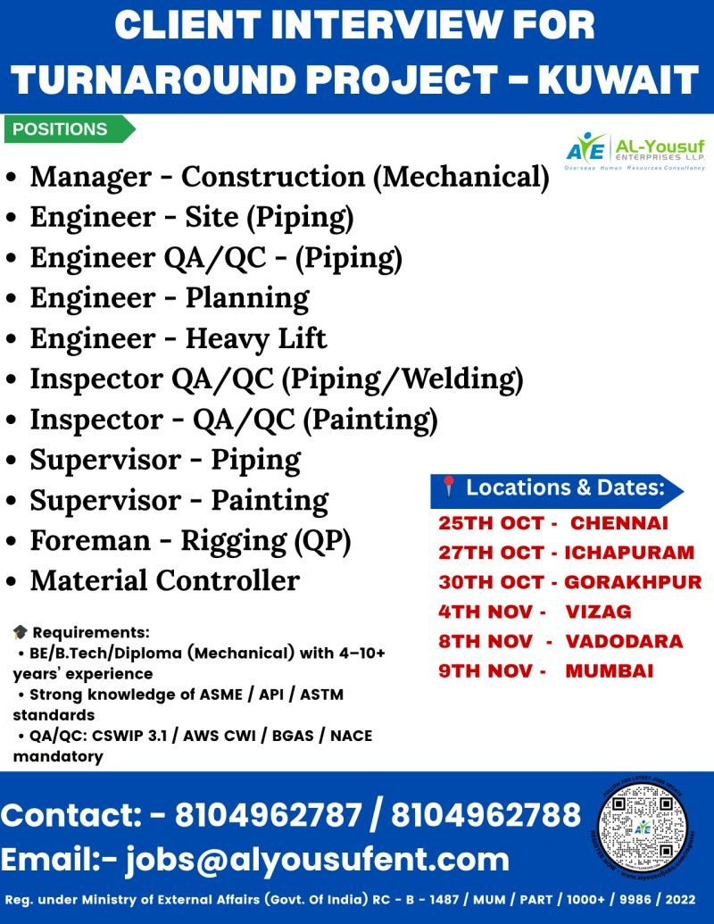 Kuwait Turnaround Project Client Interviews 2025 – Apply Now