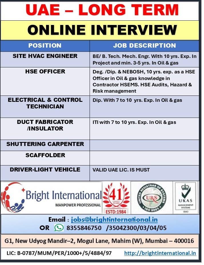 UAE Long-Term Jobs 2025 – Online Interview