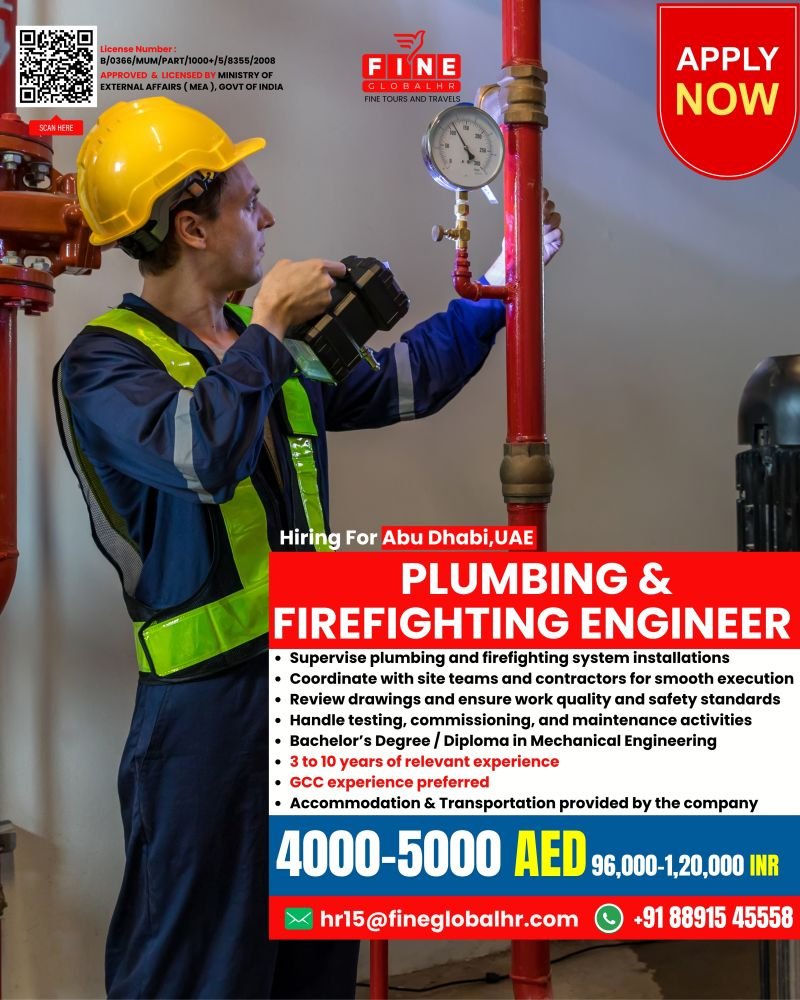 Urgent Hiring For Plumbing & Firefighting Engineer | Abu Dhabi, UAE
