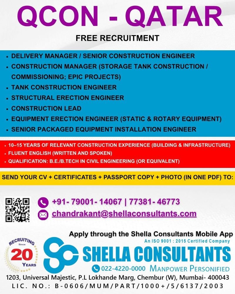 Recruitment For QCON – Qatar – Oil & Gas Project