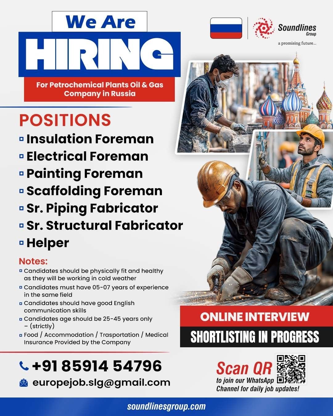 Russia : Hiring For Petrochemical Plants Oil & Gas Company