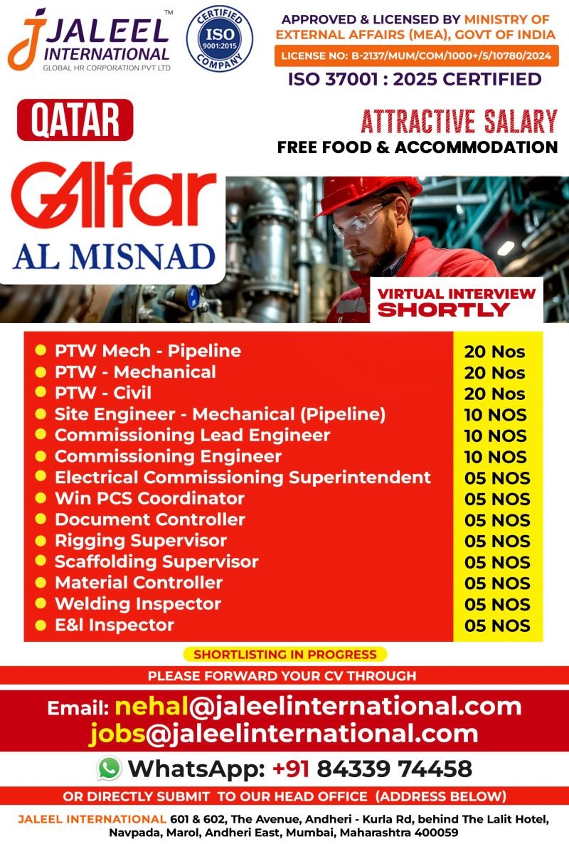 Urgent Job Openings for Qatar Shutdown Project – Apply Now