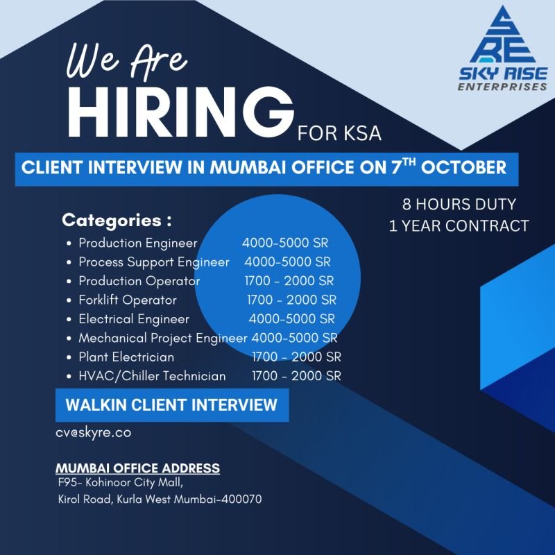 Urgent Hiring For Saudi Arabia