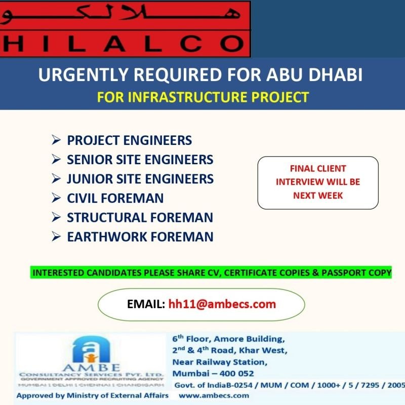 Urgently Required for Abu Dhabi Infrastructure Project – Hilalco Jobs