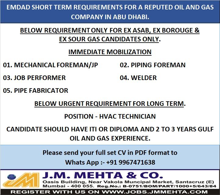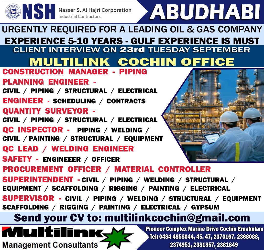 Job Opportunities in Abu Dhabi with a Reputed Oil and Gas Company
